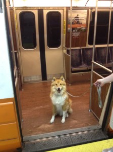 A quick note: if you do plan to try this, I highly suggest a clicker and a big bag of super-delicious treats (something a cut above the normal) so that you can communicate to your dog which T-riding behaviors are the ones you like the most. Believe in your dog: with a little training they can be model public transit users. This was only my dog’s 3rd train trip but already he knew to wait for permission to board, to lie down near our feet at the end of the carriage, and not to bark when people left the train (he’s part Australian Shepherd and he takes the loss of flock members as a personal failure).